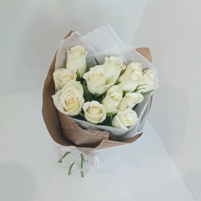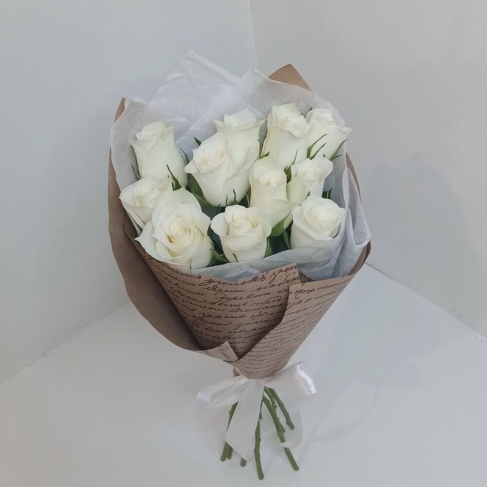 Букет из 11 роз белых в крафте