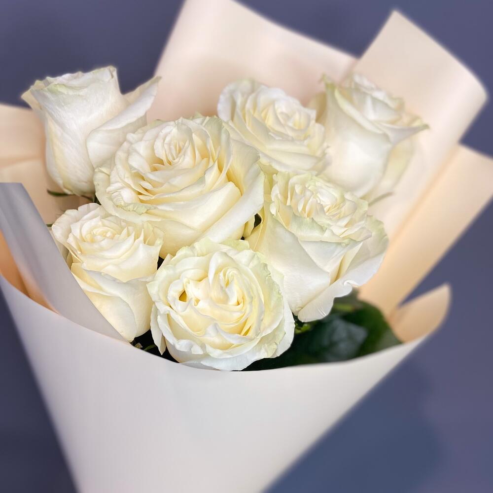 Упаковка – 1 шт.Роза белая мондиаль – 7 шт.